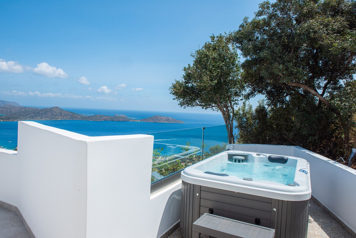 小型套房配有私人按摩浴缸,位於Adrakos公寓的私人一側,提供陽臺,可欣賞Elounda海灣的開放景觀。 套房配有雙人/雙人牀、小廚房和獨立浴室。 設備齊全的廚房、冰箱、咖啡機、放大鏡、Wi-Fi、空調、衛星電視、保險箱。 現代化的家具陽臺非常適合觀賞美景,或享用飲料或用餐。