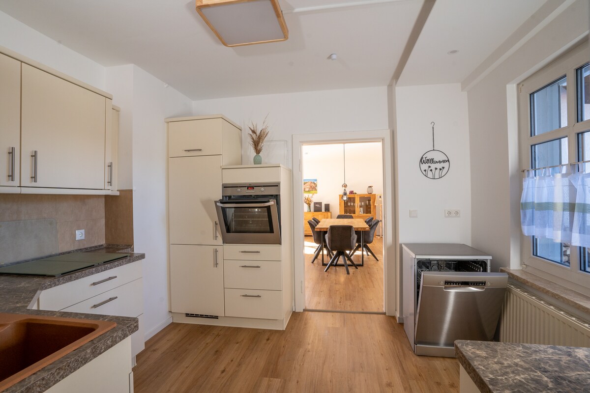 這是一棟位於茅草屋頂房屋區的雙層房屋,可俯瞰阿赫特瓦瑟 (Achterwasser) 的美景。 地塊面積為1200平方米。 所提供的半獨立式房屋(Kielhus)由一樓、二樓、閣樓組成,居住面積為150平方米。 另一半的雙子屋位於一樓,是畫家Kerstin Langer的夏季工作室和另一個度假公寓(Achterkajüte)。