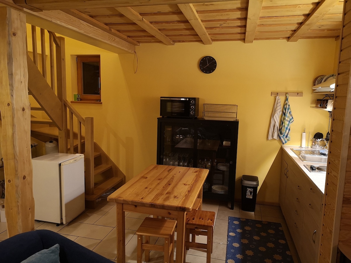 我們全新的超級舒適的客用住房,坐落在美麗寬敞的花園中。 從裏加開車40公裏即可抵達這個度假勝地,度過浪漫的夜晚或有趣的週末。 距離2公裏處還有2個湖泊。 您也可以預訂熱水管、桑拿房或全地形車,但需支付額外費用。