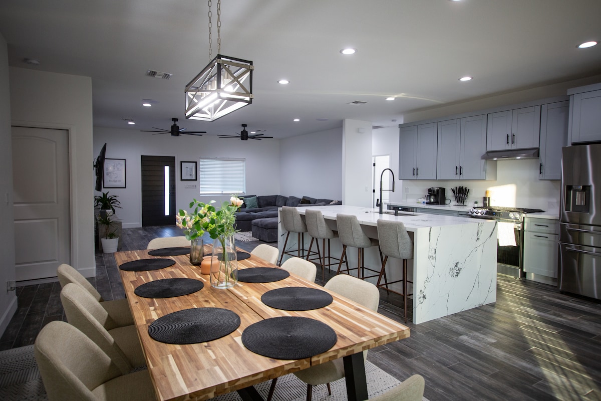 Welcome to The Palms Bullhead! Our stunning home boasts a modern-contemporary design, ensuring an unforgettable getaway experience. You'll find yourself just a 15-minute drive from Laughlin, 5 minutes from the Colorado River, and 5 min drive to Rotary sports park. Even Walmart is just a 1-minute drive away, and if you're up for a scenic adventure, the Grand Canyon West skywalk awaits you within a 2-hour drive. Discounts for stays 3 days or more. Check us out!🌴
