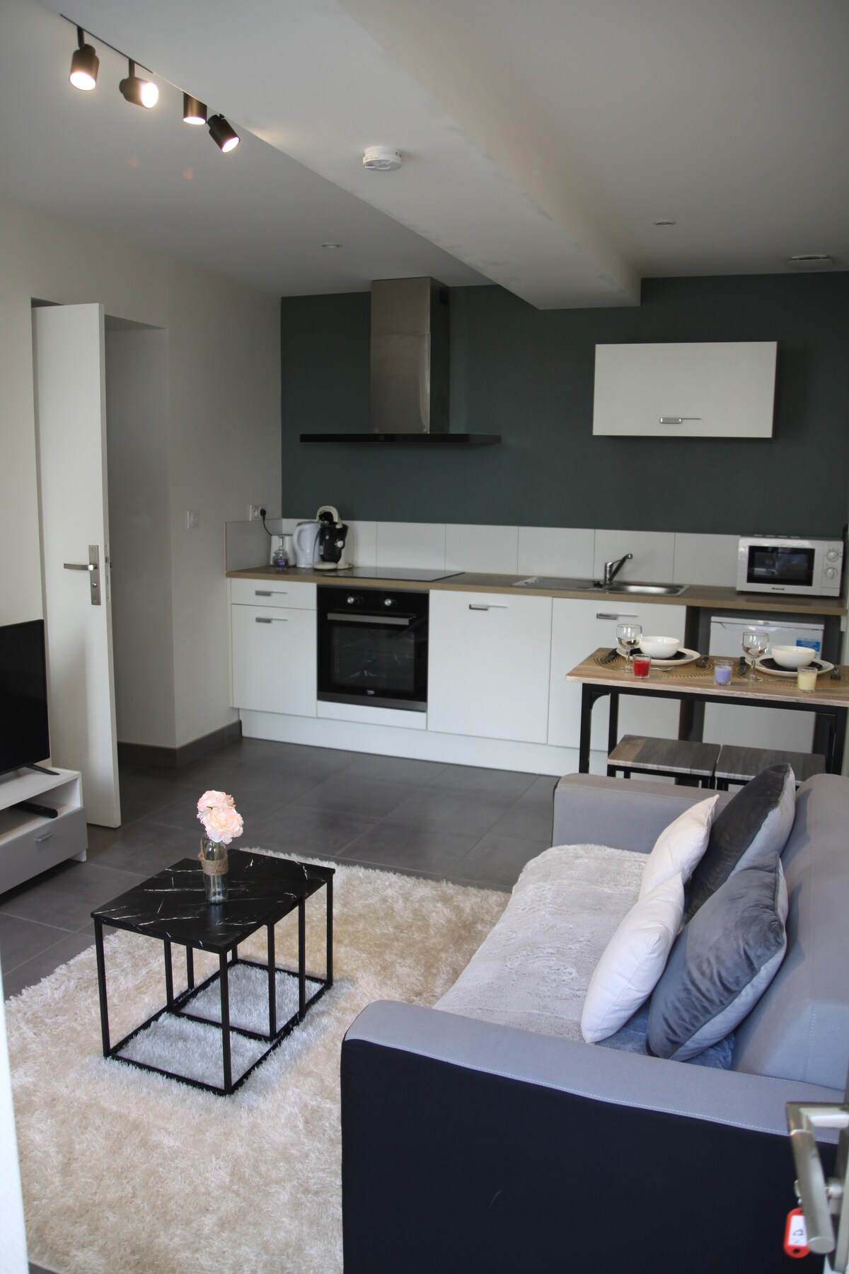 Bienvenue dans notre logement accueillant à Laval ! Vous allez adorer votre séjour ici. Notre T1, idéalement situé à 5 min du centre-ville, propose une chambre confortable, une cuisine équipée, un coin repas pour 2 et une salle de bain lumineuse. Avec un décor soigné et un mélange de confort et de praticité, notre logement est parfait pour profiter de Laval lors de votre séjour.