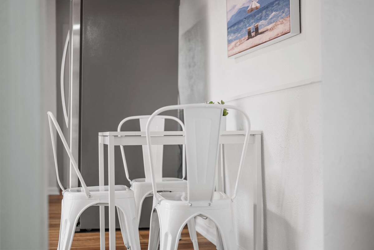 如果您需要優質、乾淨、設計師的城市住宿,這間新翻修的1間臥室公寓是理想的選擇。 它有一間配有1.8公尺寬雙人牀的獨立臥室、一間配有全新沙發牀的客廳、一間功能齊全的小廚房、一間獨立餐廳和一間全套衛浴。 一樓有獨立入口,非常適合需要安全、乾淨和舒適的公寓過夜充電(不適合10歲以下的兒童)。