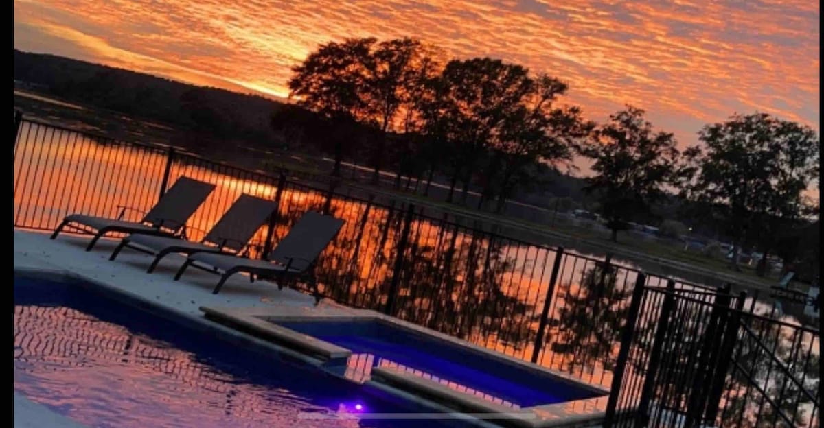 Perrydise湖畔別墅,配有泳池、按摩浴缸和日落景觀