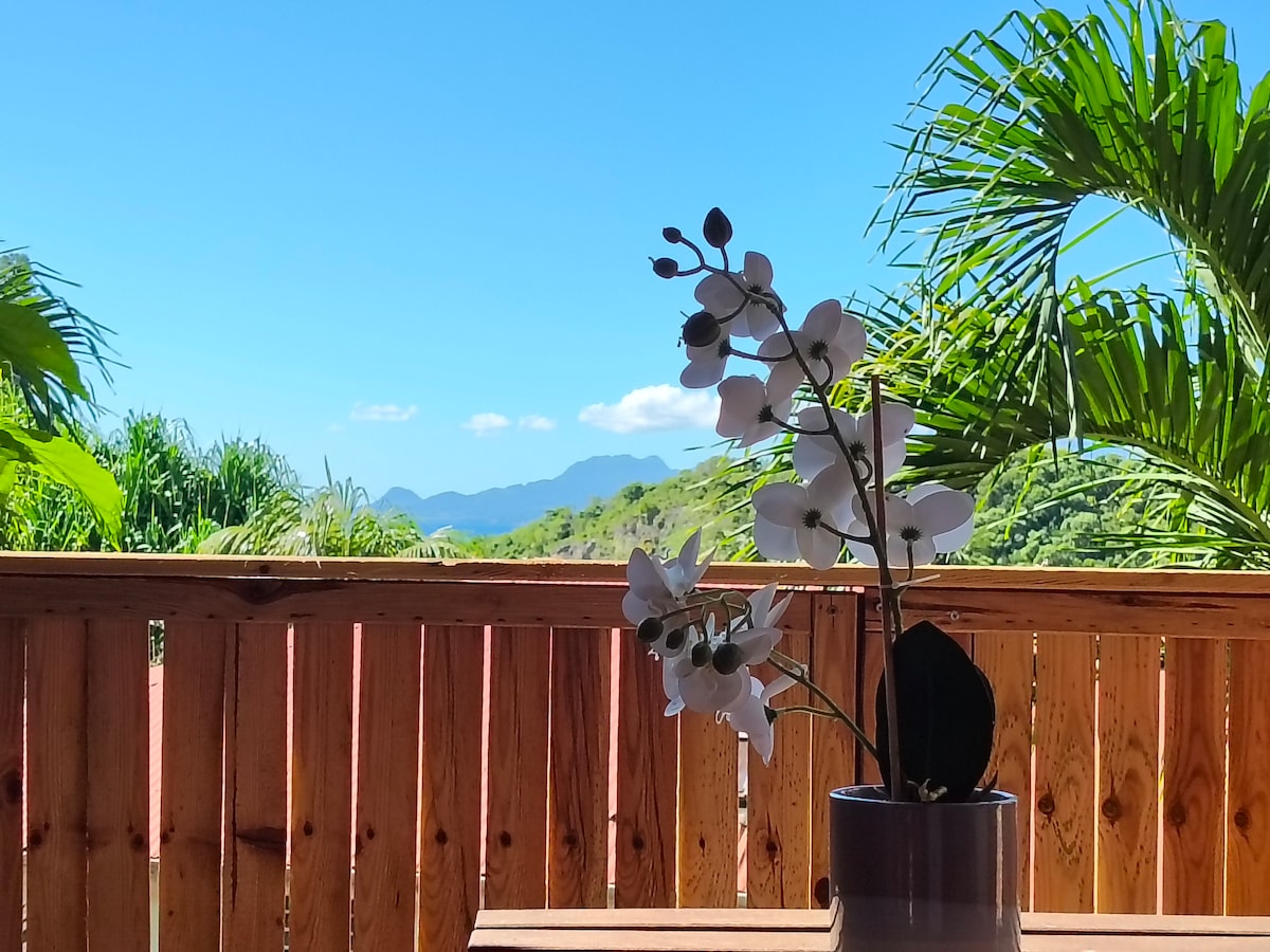 在瓜德羅普島度過一個真正的假期,在寧靜的環境中,美麗的寬敞的單間公寓,現代化,有空調和所有的舒適,由一個大客廳,附帶浴室,廚房配備在懸掛的木製露臺上。 優質的 160 床上用品、床單和毛巾,休閒區和花園,非常適合藝術創作、音樂、閱讀、冥想。 海景,步行即可抵達小港海灘 (Plage de Petit-Havre)。 靠近所有便利設施 私人停車場