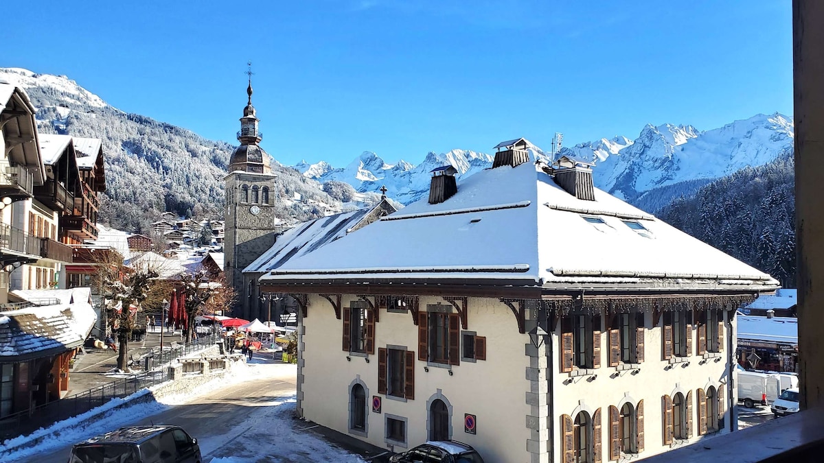 Grand Bornand Centre village, 58 m², 6 personnes, 2 chambres, Vue sur les Aravis, au Coeur du village.