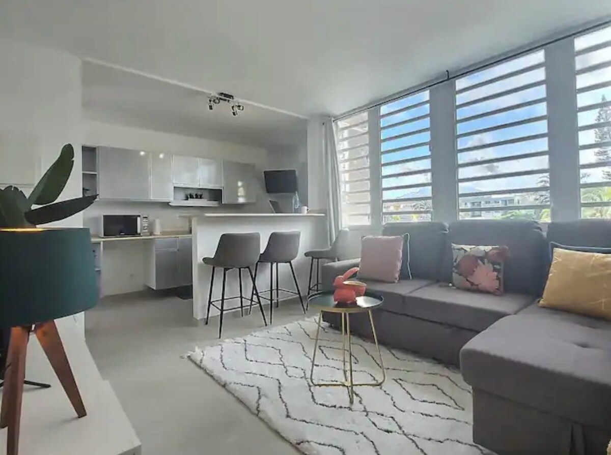 在一個位於豪華、安全的住宅區的美妙單臥室公寓(64平方公尺)中體驗非凡時刻,距離首都法蘭西堡(Fort-de-France)僅5分鐘路程,您將被海浪撫慰,被壯麗的日落驚豔。 前往附近的海灘、餐廳、超市、賭場和潛水中心都在3分鐘內。 優質設備:雙人床、空調、設備齊全的廚房、面罩/浮潛設備和安全的停車位。