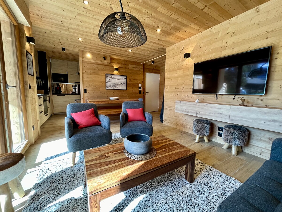 La Cabane最多可容納7人。床單是可選服務。公寓面積 55 平方公尺 + 25 平方公尺露臺 躺在朝南的露臺躺椅上,欣賞南阿爾卑斯山雪山的全景,沒有任何對面。 當外面寒冷時,坐在舒適的俱樂部椅子上,在煙囪前暖身:您可以想像自己在舊時的小木屋中...儘管如此,配備了WiFi、電視和一切現代舒適。
