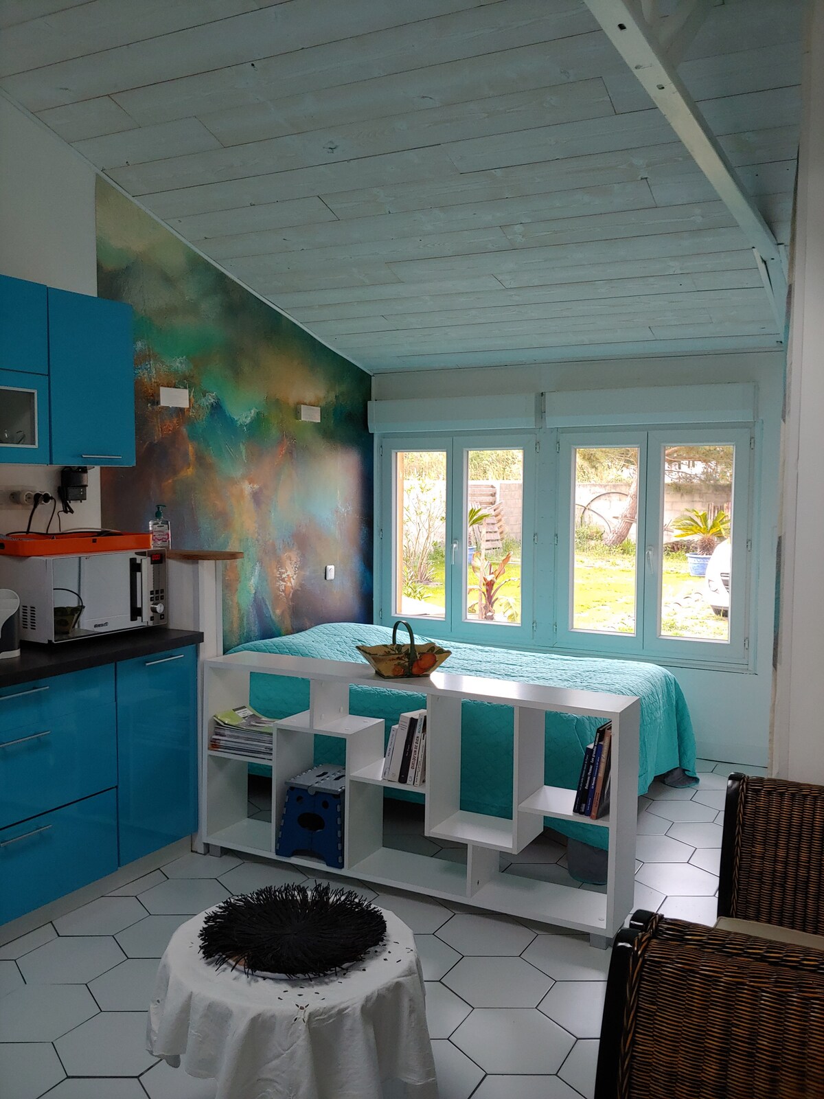 Niché sous les chênes et au calme nous vous invitons à découvrir notre charmant studio neuf de 40m2, idéalement situé entre Arcachon et le Cap Ferret. Ce studio, à la fois spacieux et confortable, est équipé d’une cuisine moderne, d’une climatisation réversible et d'un espace de travail équipé d’une connexion fibre. Une place de parking est à votre disposition avec possibilité de recharger votre véhicule électrique.