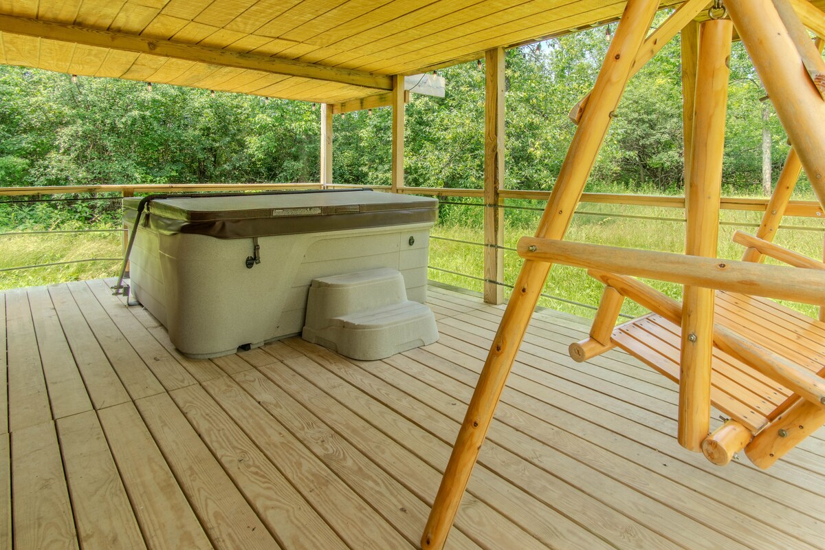 Welcome to the Hideaway Cabin, where you can unwind in the embrace of nature. Here, you can sizzle your favorites on the grill, lounge in the Adirondack chairs on the balcony, or simply relax indoors. Come evening, gather by the firepit on the porch to watch the fireflies dance or relax in the hot tub on the back porch. It's the ideal blend of natural serenity and homely comfort. In the winter, cozy up by the woodstove in the living room and catch up on your favorite TV shows.