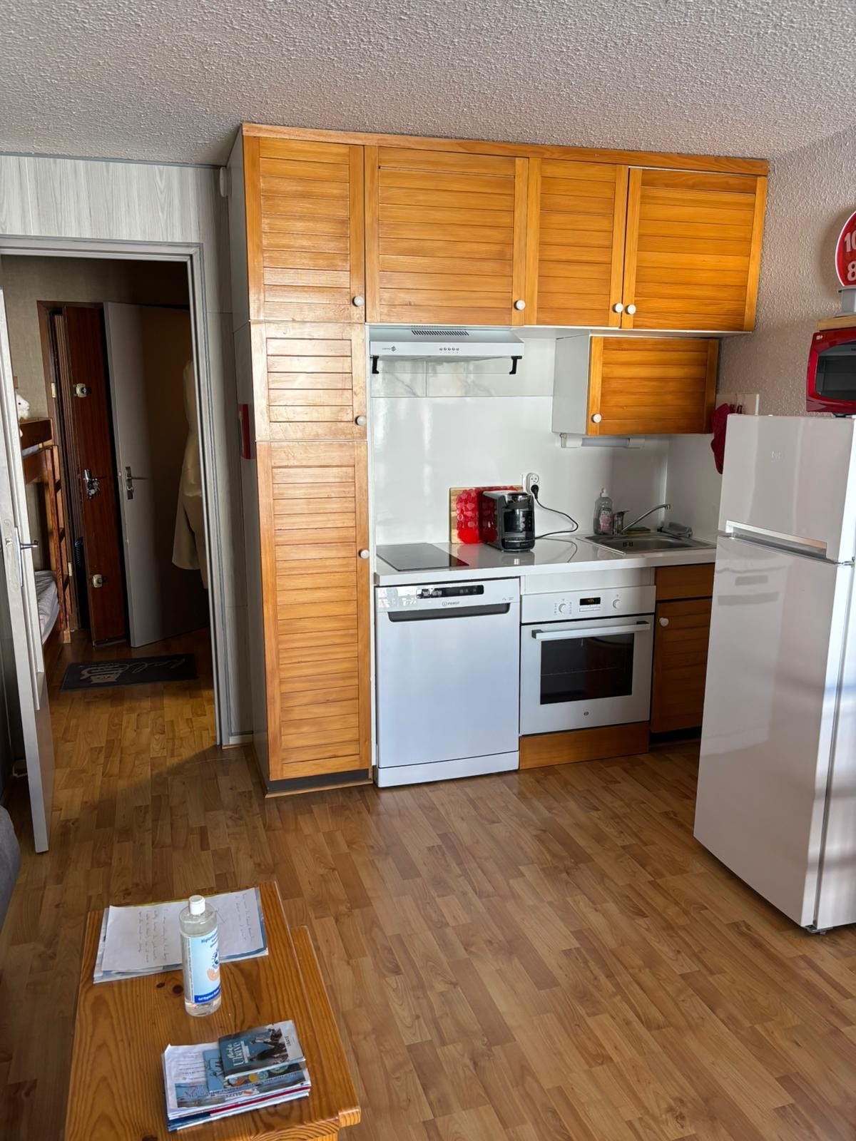 Studio 4 couchages (24m2), pieds des pistes (départ et arrivée en ski) balcon+ local ski. Coin nuit avec 1 lit gigogne 90x190 et 1 canapé lit 140x190 dans la pièce de vie. Linge de lit ( housse couette, draps , taies d’oreillers ) et serviettes bains non fournies. Wc indépendant de la salle de bain.Animaux interdits.Ménage départ obligatoire 20€ (compris dans prix total).Possibilités de décharger devant l’entrée du bâtiment donnant directement accès local ski et ascenseur. Place parking privée!