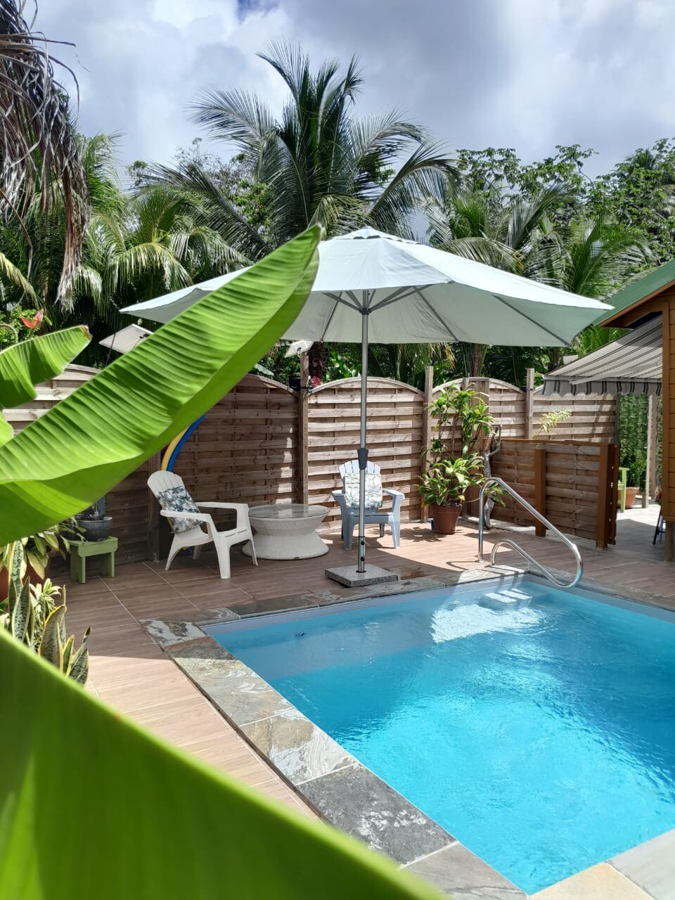 Situé dans un quartier résidentiel et calme du François, l'espace Ti-Rouge sera l'écrin d'un séjour chaleureux, calme et reposant au cours duquel vous pourrez profiter (seul(e) ou à deux) d'un bungalow totalement aménagé et d'une piscine qui vous tend les bras. Bien que situé sur la propriété familiale, vous disposerez d'une totale autonomie.