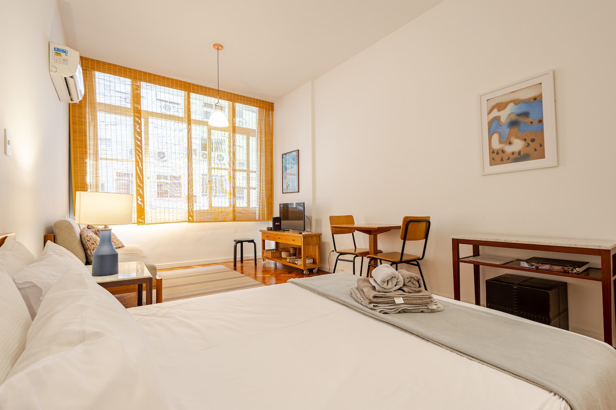 公寓經過全面翻修,位於裏約最好的街區,距離海灘只有一個街區,距離商場只有一個街區,附近有茶館,餐廳,地鐵站,自行車站 在60年代的一棟非常酷的建築中,女主義在歷史上是遺產,內部完全改變了平面圖,以提供開放和整合的空間,充足的自然光線。 配備優質的家具、新電器、優質棉牀單和毛巾。 100% LGBTTQIA +友好