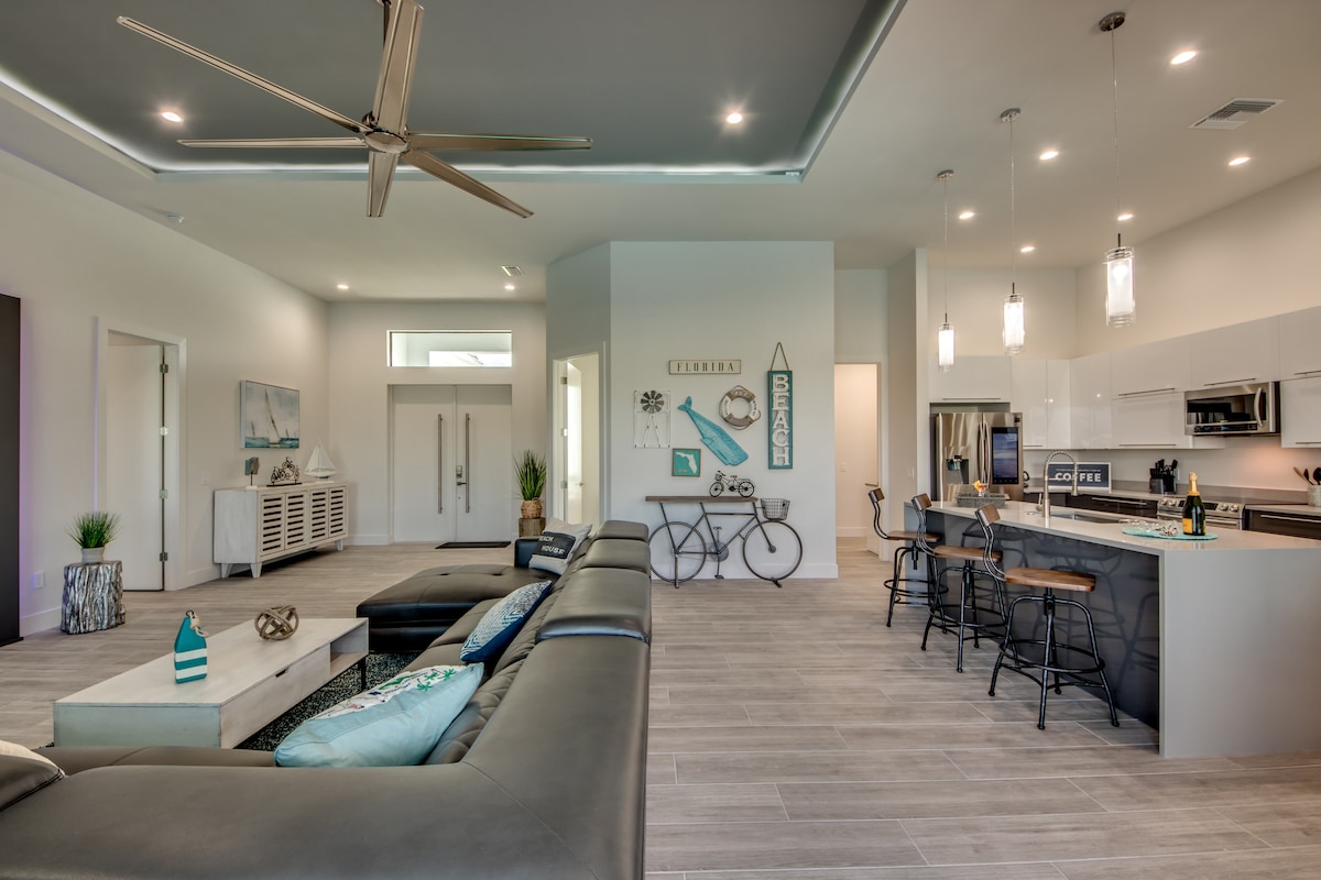 Unwind Cape Coral歡迎您來到陽光明媚的佛羅里達州西南部,靠近壯麗的海灘、釣魚、採貝、明尼蘇達雙城隊春季訓練等。來享受這個新建的房源,配有溫水泳池、獨木舟、溫冷兩用遊戲室(PlayStation 5)、海灣通道-鹽水運河、4k oled電視和更多清新的設備。您會喜歡這個乾淨明亮的房源,裝飾精美。位於西南開普科勒爾(Southwest Cape Coral)的Pelican社區,非常受歡迎!
