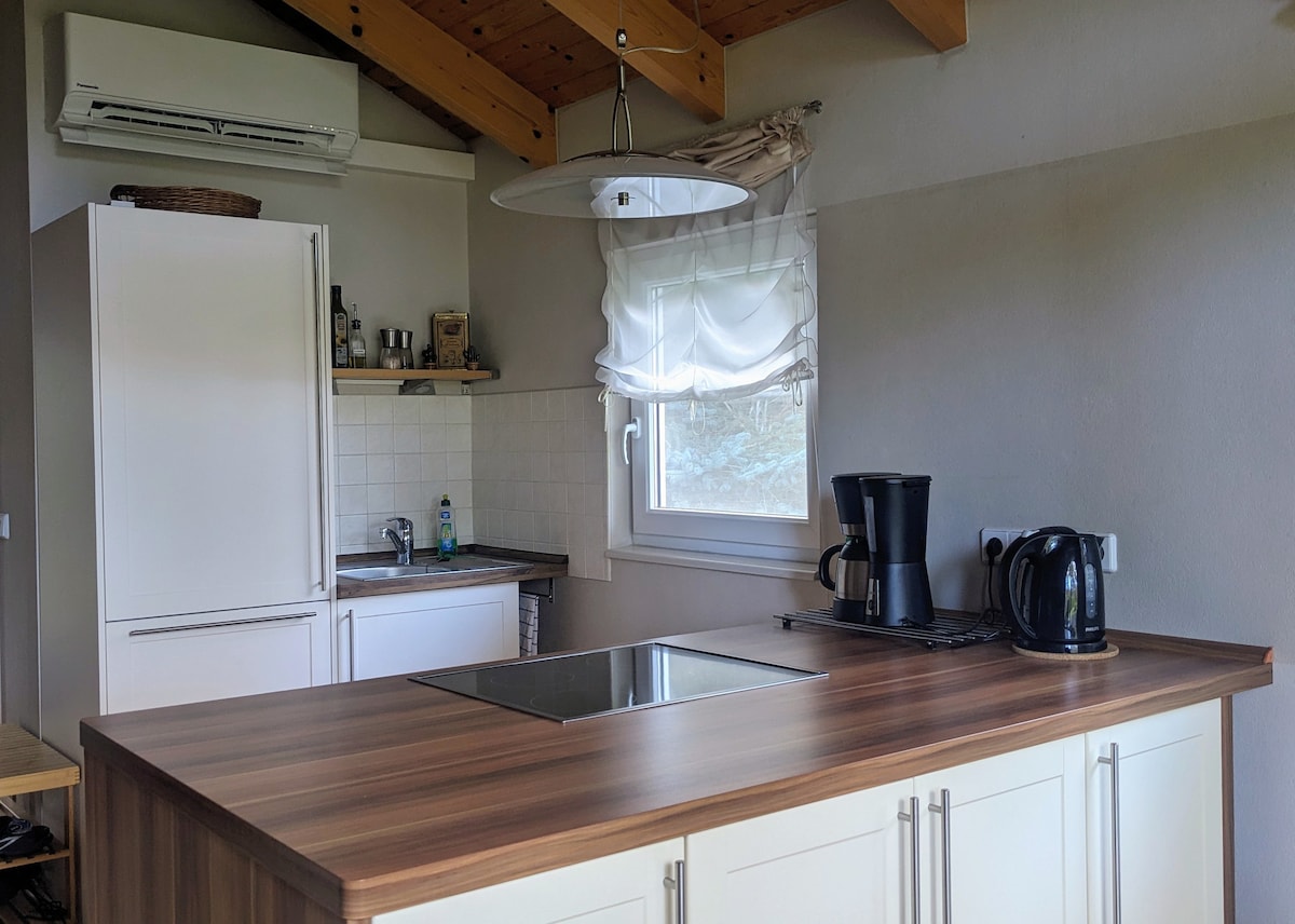 設計精美的房子,有一半有自己的入口和花園區域–安靜地位於大自然的包圍下。 在約70平方公尺的空間內,您會發現兩間配有雙人床的臥室、一間配有浴缸和淋浴間的浴室,以及一間配有用餐區域的舒適客廳。 現代化廚房設備齊全,配有烤箱、洗碗機和冰箱,非常適合情侶、家庭或尋求安靜的人。