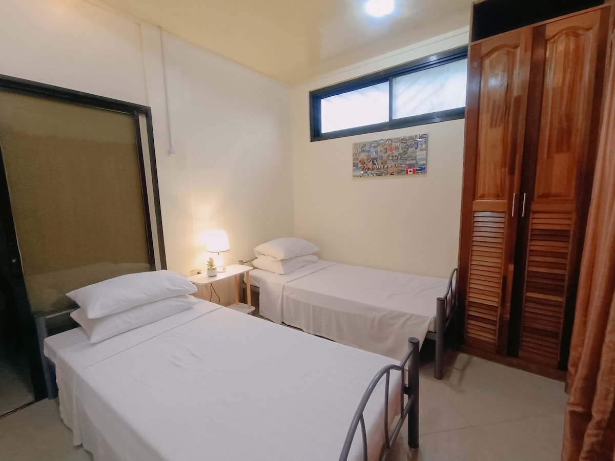 3間臥室單位位於一樓。 -僅適合6至13人入住。 -與房東共用廚房- -廚房配有瓦斯爐和廚房用具。 -私人用餐區域,配有餐具、玻璃杯和盤子 -免費飲用水, -免費WiFi和門禁停車位。 -所有3間客房均配有空調和私人CR。 -提供紙巾和毛巾。 -沒有遊泳池和電視 -請自備洗漱用品