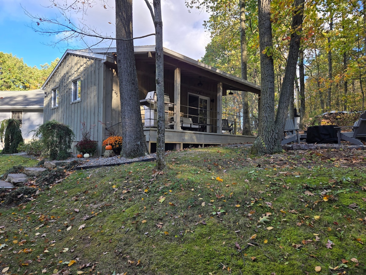 池塘和小溪之間的美麗2臥室小屋。 整棟房子配有設備齊全的廚房、用餐區域、帶壁爐的客廳、配有高速網路的工作區域、書籍、遊戲和ROKU電視。 主臥室面向池塘;第二間臥室位於溪畔。 戶外活動包括:瓦斯火坑、野餐桌、瓦斯烤架、遊戲和水邊座位。 這個特別的度假勝地靠近商店和Poconos季節性活動,但隱藏在您放鬆和享受的地方。
