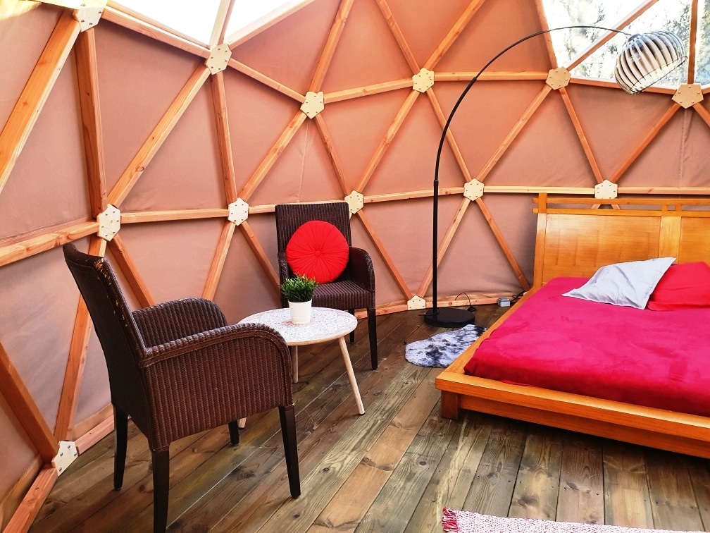 一個小巢穴,坐落在樹上,離地面 4 公尺,遠離視線......以環保的方式。 燕子巢是一個小球體,配有一張直徑 2.1 公尺的圓床,可舒適容納兩名成人。 隱藏在樹冠中的露台朝東,非常適合在戶外享用早餐。 在一樓,您可以使用私人空間,讓您的住宿更加舒適:浴室、廁所、迷你廚房