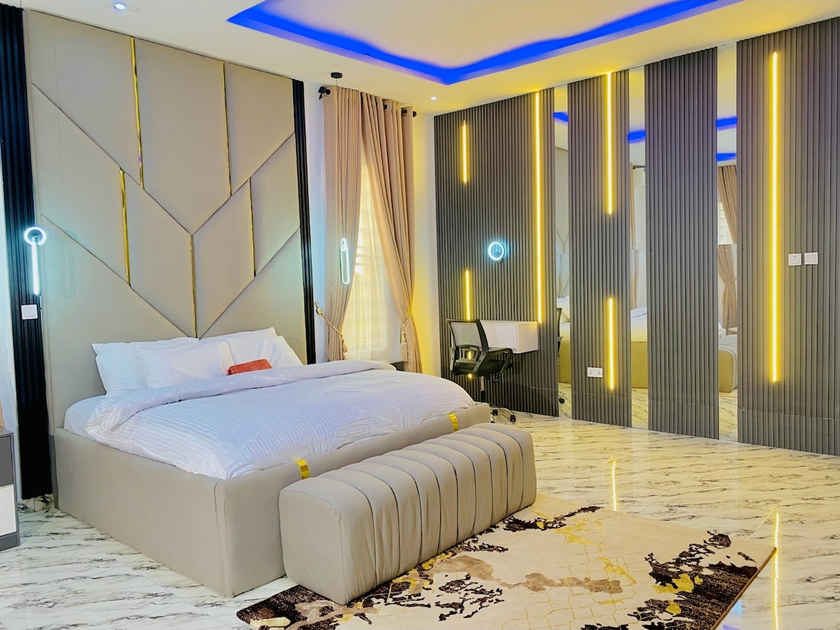 這間公寓是遠離家鄉的第二個家。由拉各斯頂尖室內設計師精心設計。現代化的公寓,既優雅又精緻,但又讓人感到舒適。 您將享受: ● 輕鬆前往VI、Oniru、香蕉島 ● 入住流程如飯店 ● 智慧鎖入住 24 小時、每週 7 天的現●場保全 ● 24小時不間斷供電 至少可供4位房客使用●的安全/免費停車位 ●2名物業管理員和2名清潔員,不收費