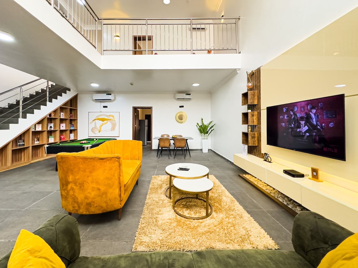 Escape to the iconic Pink Loft in Lekki Phase 1 — a bold, romantic space with private pool, double-volume ceilings, designer interiors, and all the luxury comforts. Perfect for couples, creatives, or short-stay guests seeking style, privacy, and convenience. Walk to top restaurants, lounges, and shops, with easy access to VI & Ikoyi.