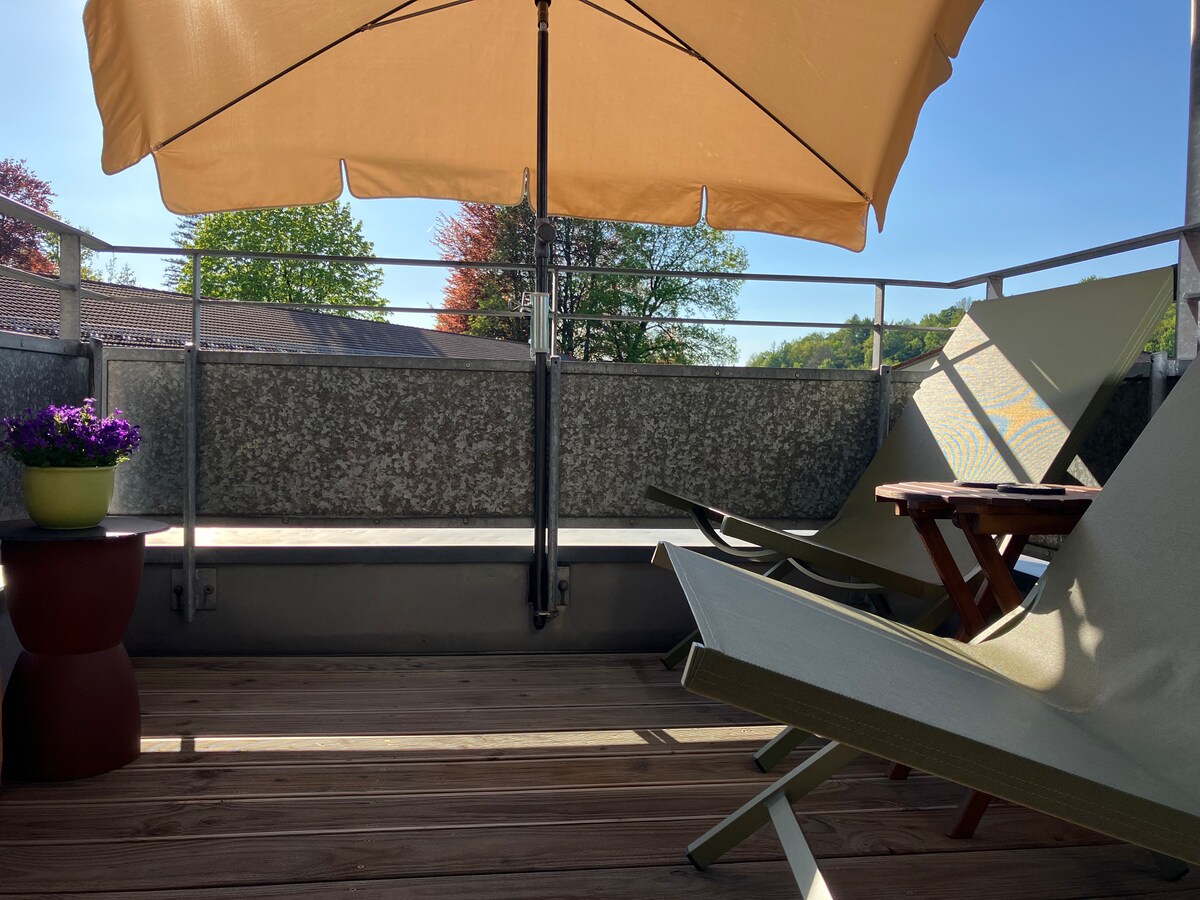 這是一間約 13 平方公尺的臥室,有一個舒適的小廚房,配有桌椅和一個帶浴缸、馬桶和淋浴的浴室。臥室和廚房都可以通往陽台和露台,可俯瞰阿默湖 (Ammersee)。此外,還有一個戶外休息區,可在附近的森林中放鬆身心,這也是公寓的一部分。車可以停在地下停車場。步行 10 分鐘即可抵達湖泊和海灘步道