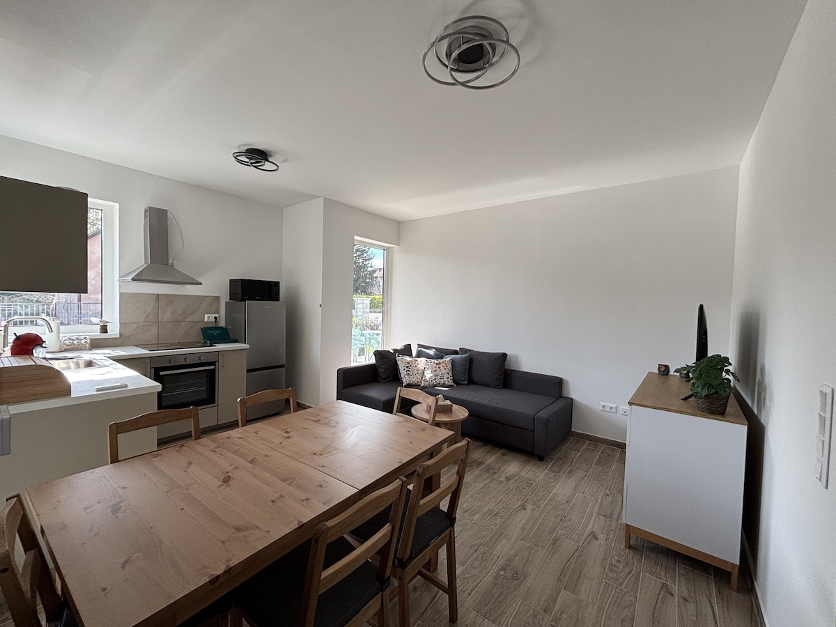 開放時間:3月1日至10月31日(每晚最多5人) NTAK編號:MA22051371(私人住宿) 公寓位於一個安靜的小村莊邊緣,非常適合休息和放鬆。 步行即可抵達溫泉浴場。 開車半小時即可抵達巴拉頓湖。 附近城鎮的活動可以提供積極的娛樂。
