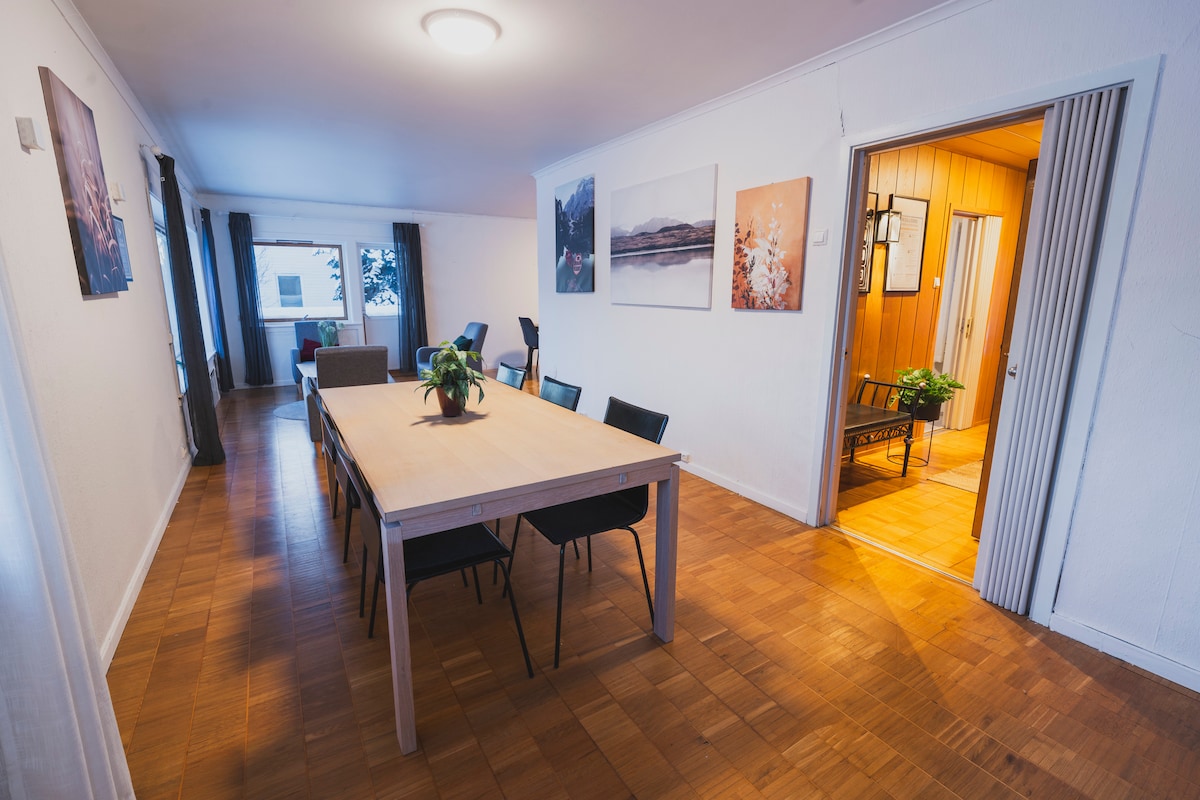 在這裡,您可以住在靠近大自然的地方,入住全新的客用住房,靠近城市。 屋頂下有免費停車位。 客用住房的位置非常獨特,靠近大海、城鎮和山景。 閣樓的睡眠區域經過設計,您可以躺在星空下,到處都是天窗,同時在側窗中俯瞰峽灣和城市。 最適合2人睡在雙人牀上,但可以在沙發牀上睡覺。 建議使用私家車/租賃/計程車 開車9分鐘即可抵達機場