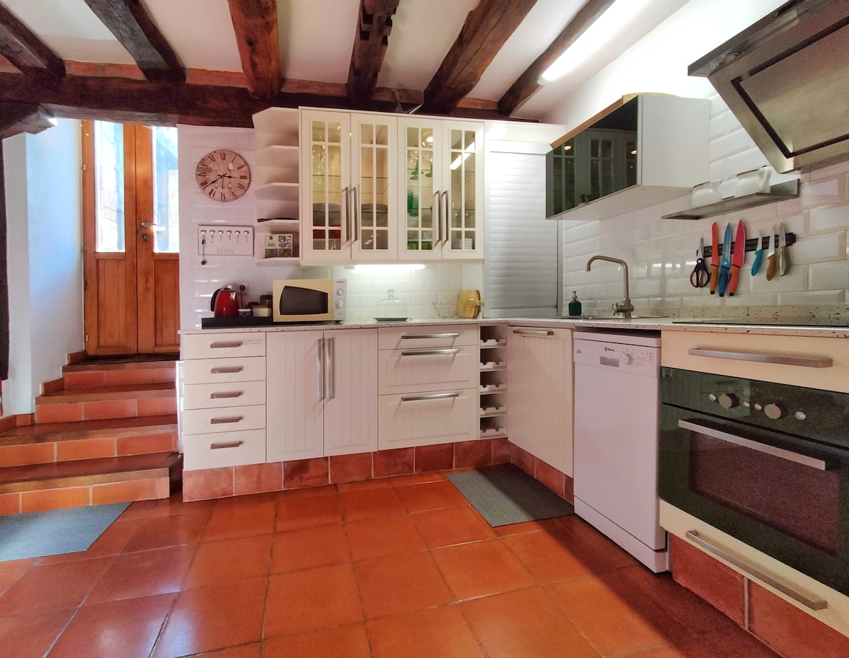 Vivienda de 75 m2 útiles distribuidos en tres niveles y que cuenta con cocina independiente, distribuidor-comedor, salón con chimenea y dos dormitorios con baño incorporado. Se trata de un edificio antiguo totalmente renovado y equipado con cocina vitrocerámica, horno, microondas, lavadora, lavavajillas, frigorífico, pequeños electrodomésticos, vajilla y ropa de cama y baño. Tiene un patio cerrado con acceso desde la cocina para relajarse o comer en el exterior y un balcón sobre la calle.
