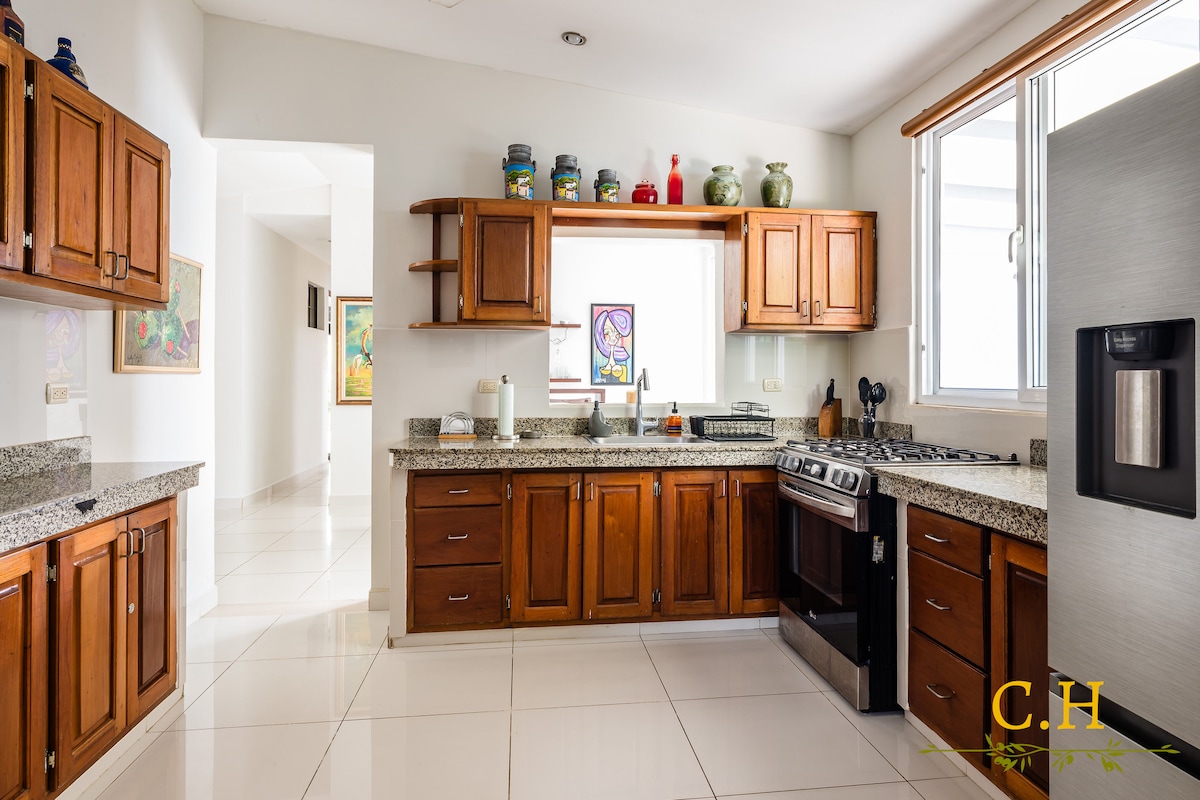 This beautiful 3 bedroom home located in an exclusive, prestigious, safe and quiet gated community. This community showcases the beauty of Managua from its beautiful green common areas, walking trail, basketball court and a Club House that has a semi Olympic pool, kids pool, full equipped gym, a large entertainment room with a playground. This house is perfect for families vacation, leisure or business travelers. Enjoy our high speed -internet, AC and ceiling fan in all bedrooms, 24/7 security.