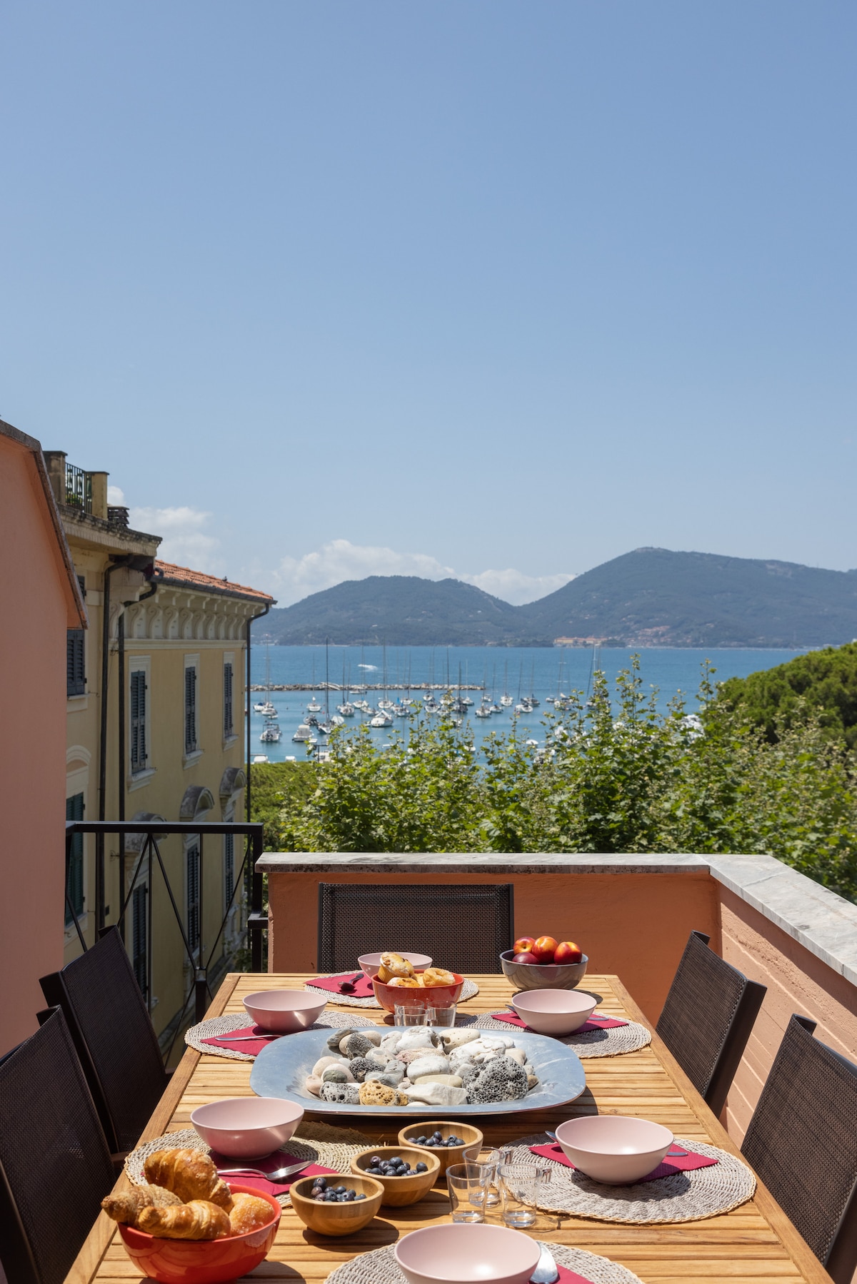 從公寓眺望的景色令人驚嘆。一張明信片。它將為您提供廣場和港口的驚人景觀,以及一天中每個時間的獨特體驗。浪漫的日落和典型的意大利廣場生活。 萊里奇的最佳位置,面向迷人的廣場和城堡,距離前往五漁村的渡輪碼頭和前往所有目的地的巴士站50公尺。大多數餐廳、酒吧、商店和藥店都在100公尺內。