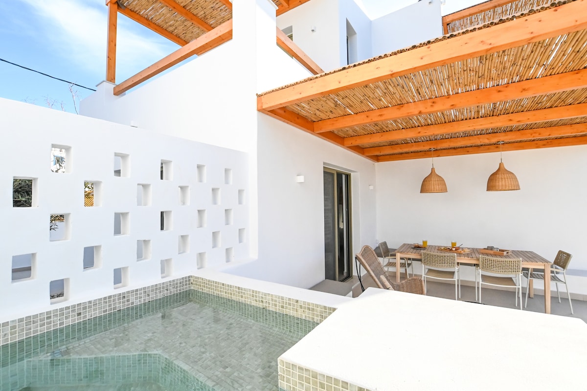 入住時尚的 Loft 空間,享受舒適與探險的完美結合。 在加大雙人床上安靜地睡覺,在沙發床上放鬆身心,並享受設備齊全的小廚房,滿足您的所有需求。 走出私人露台,還有跳水池,欣賞愛琴海和泰倫多斯島的美景。 距離熱門攀岩地點和Masouri僅幾分鐘路程,附近有商店、咖啡廳和海灘。