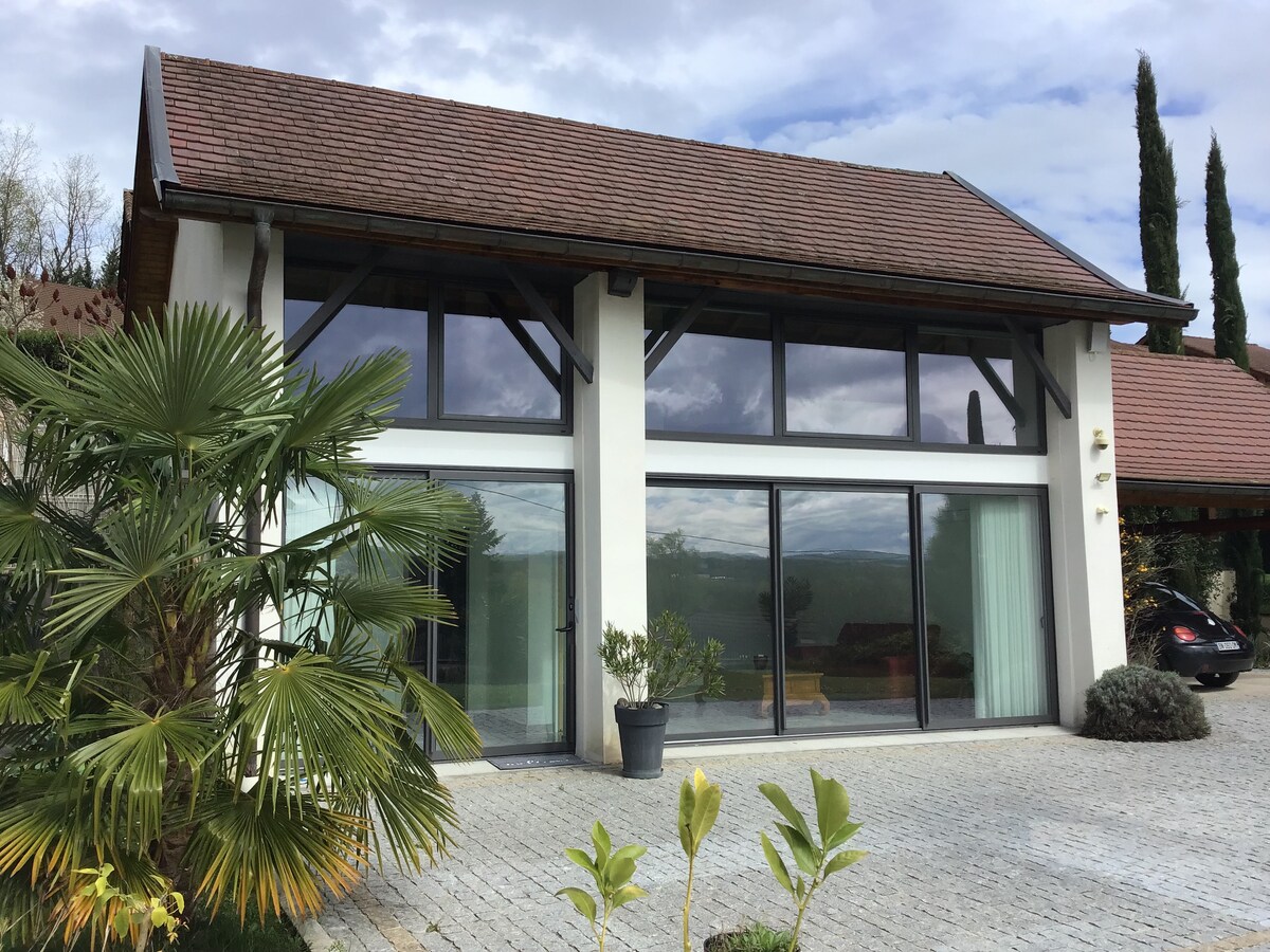 我們提供一個有獨立入口的房間。這個房間是用有機和生態材料翻新的農舊農舍(就像 Airbnb 房間一樣)。 我們位於薩瓦一個村莊的高地上,在聖雅克朝聖路 (chemin de Compostelle) 上,距離高速公路 5 分鐘,距離里昂 50 分鐘,距離尚貝里 20 分鐘,距離安錫 40 分鐘。我們位於沙特勒斯山脈的門口,距離艾格貝萊特湖不遠。
