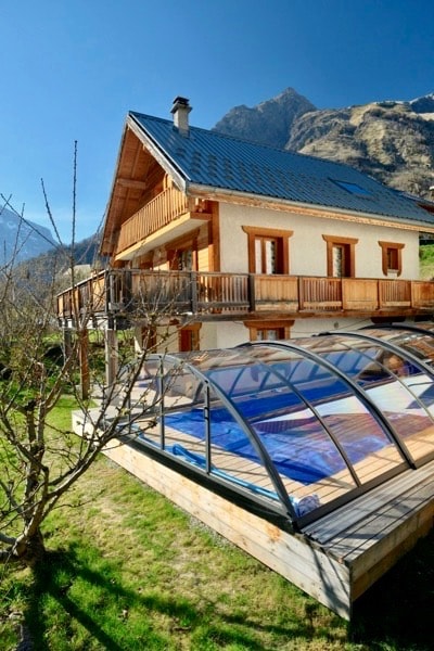 「L'Aiguille」:180 平方公尺的四星級連棟小木屋 14 平方公尺,室外按摩浴缸,溫度介於 28 至 36°C 之間,讓您放鬆身心。夏季可使用韋諾斯克(Venosc)的市立游泳池 4 間雙人房、1 間 6 張單人床的房間、嬰兒床、3 間浴室(其中 1 間附設廁所,另外 2 間為獨立廁所) 大客廳配備拱頂電視、桌上足球、撞球桌、燃木壁爐、兒童遊戲機、桑拿房。為旅客提供私人空間。露臺可欣賞壯麗景色、烤肉架、花園休息室