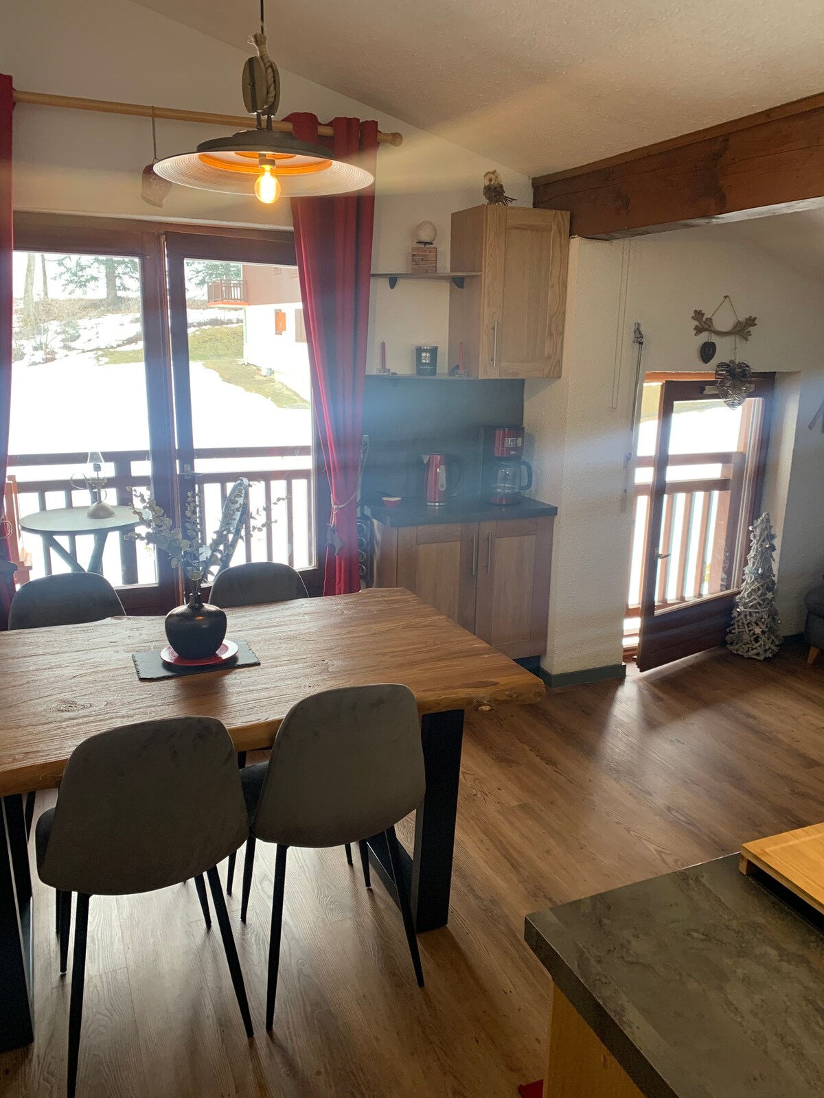 Très beau duplex spacieux, pied des pistes, des cours de ski de Flaine Forêt, plein sud, dernier étage, 7 à 8 personnes. Comporte deux vraies chambres (lit double et deux lits simples) et un coin montagne avec lit superposé. Il y a deux couchages supplémentaires dans le canapé lit du salon. Une salle de bain, une salle de douche avec WC et un WC indépendant. Casier à skis et parking souterrain payant (65€). La résidence dispose d'une piscine gratuite. Sauna, hammam et lave linge payants. Balcon