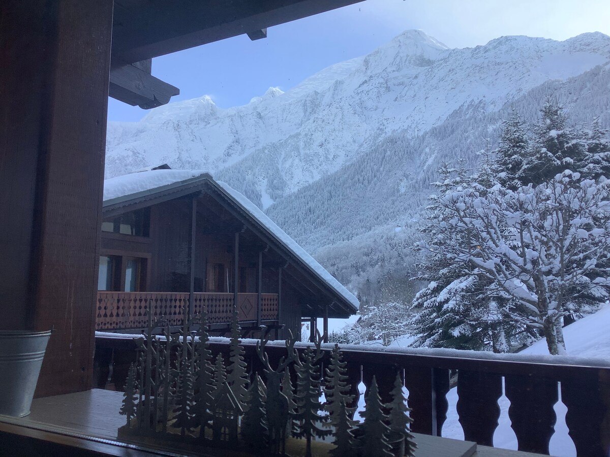 Nous vous accueillons dans notre chaleureux Appartement, vue Montagne, baptisé The Wolf, d'environ 40m2 refait à neuf en 2019. Comprenant même "un pas dans le vide" au 1er étage comme celui de l'aiguille du midi ! A 100 Mètres des pistes de ski et 10min en voiture de Chamonix. Vous vous sentirez comme chez vous ! We are enjoy to welcome you in our cozy appartment name's The Wolf, around 40m and renoved in 2019, Mountain View. Just next to the slopes 100m and the city Chamonix 10min drive!