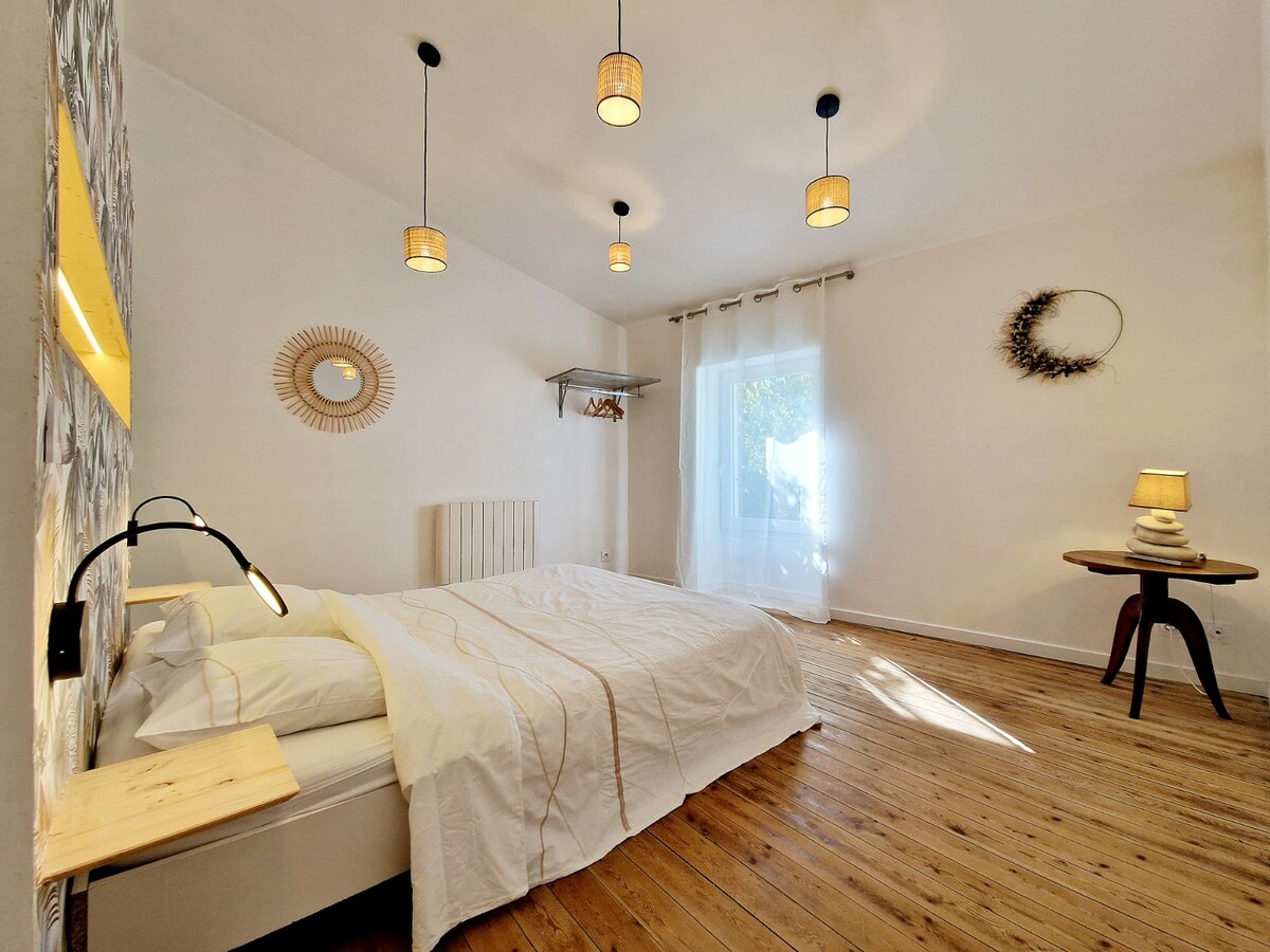 Cocon dans un jardin bucolique entre terre et mer.