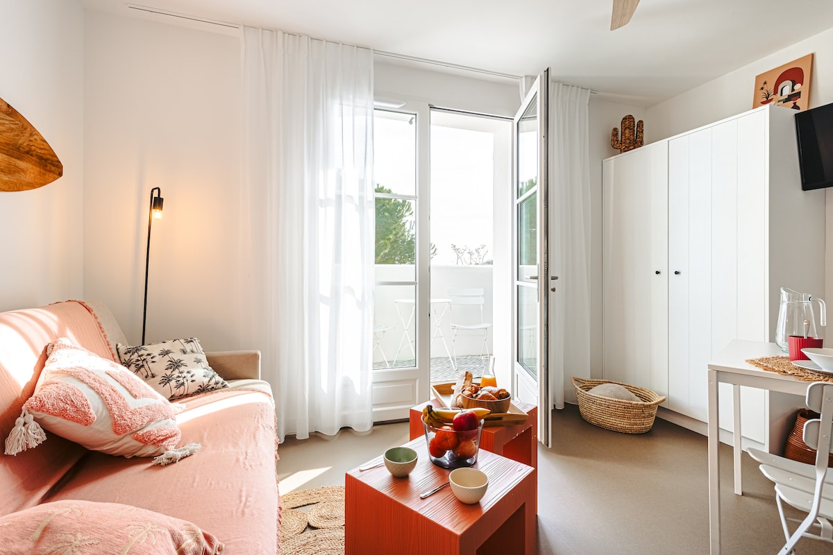 情侶或家庭的放鬆假期 在這個時尚明亮的舒適空間中放鬆身心。 全季節最佳❄️舒適度:冷暖兩用空調 安心遠距💻工作:辦公室、高速 WiFi 和安靜的環境 配備家具的休憩☀️露台 🛏️ 大型舒適床(160 公分)+ 2 張可轉換扶手椅(90 公分) 無論您是與家人同住、享受放鬆的度假,還是安靜地遠距工作,一切都旨在讓您感覺良好。