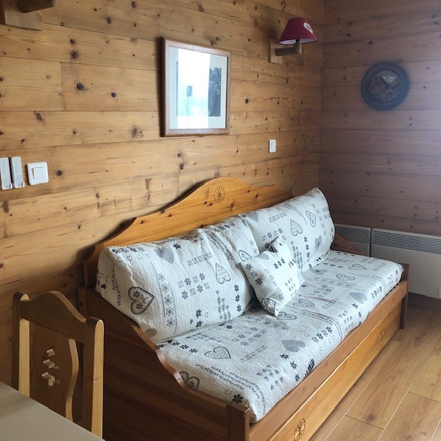 Perfect location (residence Edelweiss ) between the ski school (winter) , the pool area (summer) and the mall. - View on the slopes - With balcony - 3rd floor - Departure and return to the residence skis (or mountain biking in the summer) - Living room : 1 double bed, 1 single bed , 1 sofa bed, TV with DVD player, radio. - Fitted kitchenette with fridge, ceramic hob, sink, oven, microwave, coffee maker (classical), toaster, raclette.