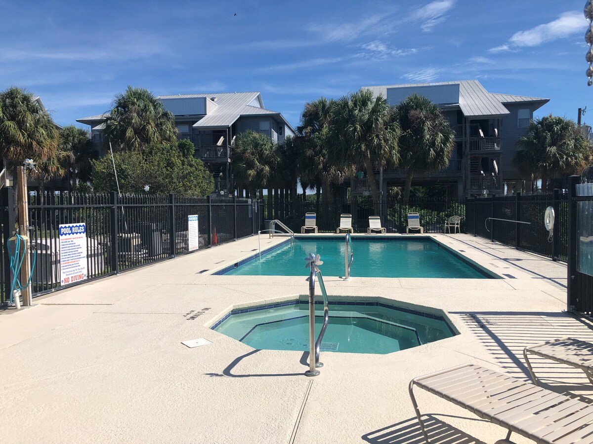 雪松島開放海灣上的明亮公寓! 大樓內有充足的船舶/拖車停車位、社區泳池和按摩浴池、私人海灘通道、烤肉區和私人釣魚碼頭。 帶上自己的獨木舟,直接從建築群出發。 Old Fenimore Mill Condominiums位於海灘、遊樂場和Cedar Key充滿活力的市中心附近。 如果想要體驗當地生活,請考慮租用高爾夫球車探索小鎮。 寵物費為每隻寵物$ 50 ,最多2隻寵物。