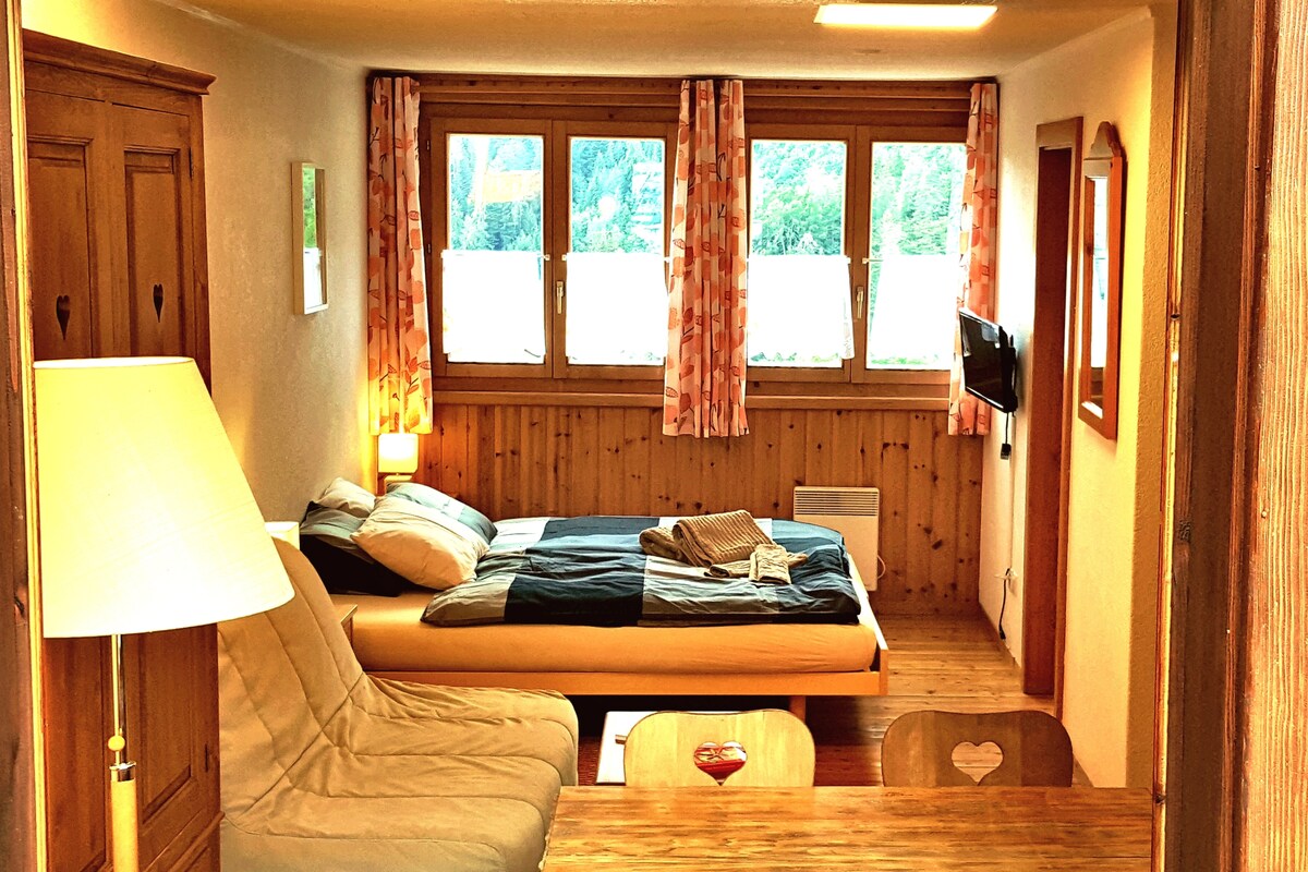 Joli petit cocon privatif indépendant situé proche de la télécabine et domaine skiable, sentiers pédestre et les bains thermaux de Lavey les Bains ou Saillon( 35 min. en vouture) La chambre peut accueillir max 2 pers. Il n'y a pas de place pour un lit supplémentaire ou un lit de voyage. Idéal pour un séjour au calme, découverte de la region, randonnées , ski , détente aux bains thermaux ou pour une halte sur la route des vacances .