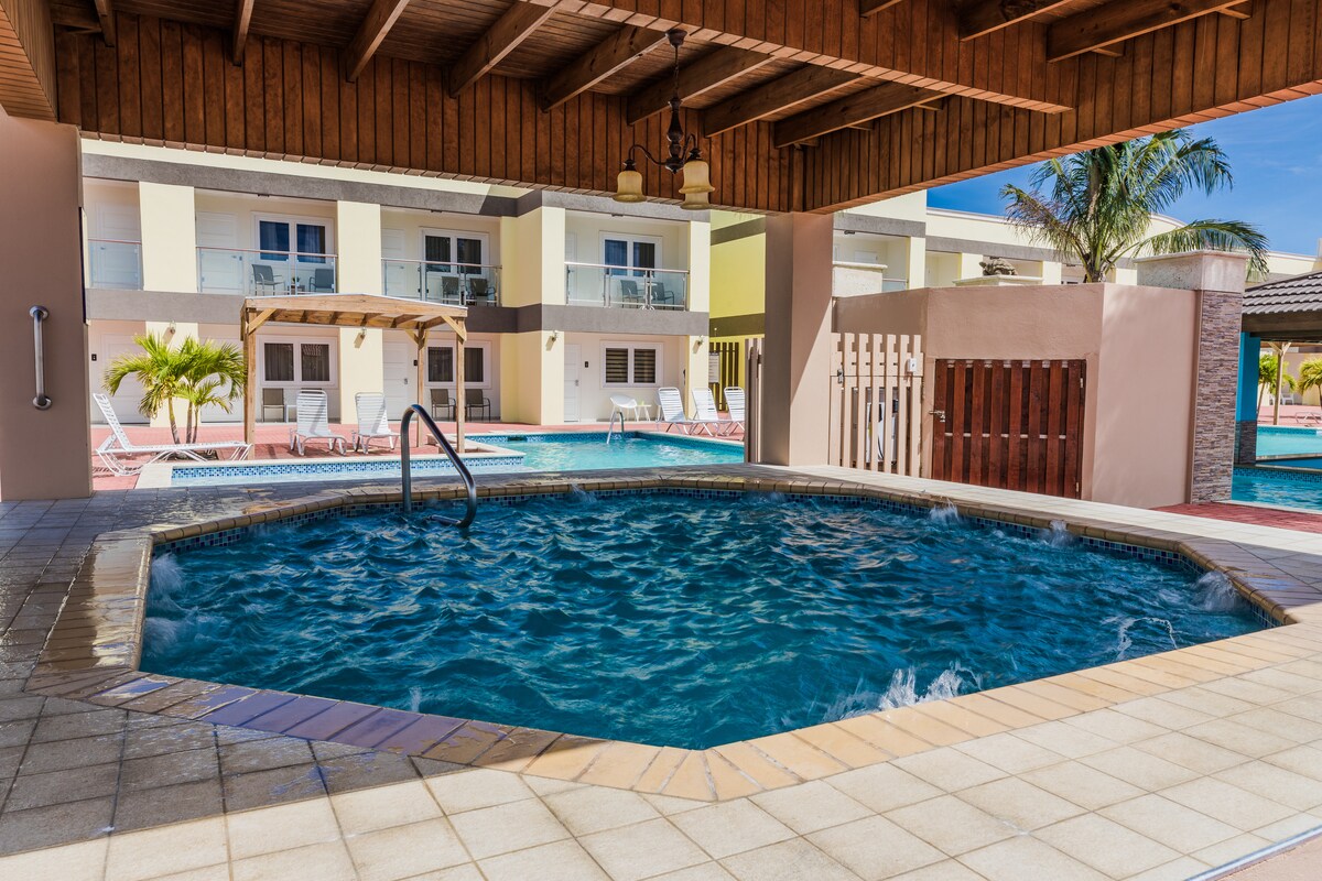 放鬆身心,享受!這間美麗的公寓(B-06)位於阿魯巴最迷人和現代化的綜合大樓之一Waykiri Condos。 綜合設施包括兩個游泳池、一個按摩浴缸(不加熱)和三個帶有迷人露臺的燒烤區。 地理位置完美,步行10分鐘即可抵達棕櫚灘。 開車2分鐘內即可抵達美麗的海灘、馬爾莫克木板路、高層飯店、餐廳、賭場和超市。 在這裡,您可以體驗終極假期!