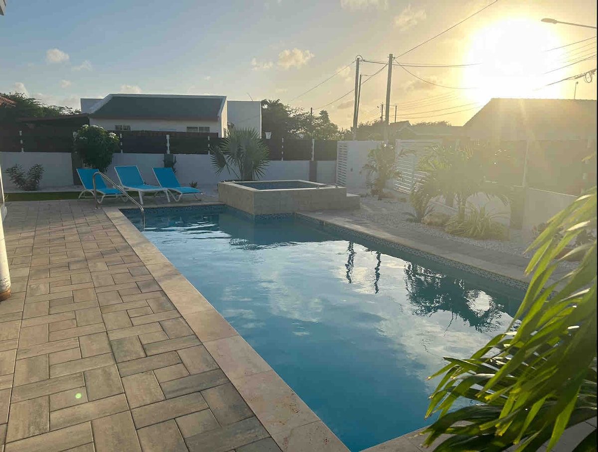 這間2BR/1K/1Q/2BT別墅坐落在大自然中,距離阿魯巴島的迷人海灘僅7分鐘路程,讓您沉浸在寧靜中。 這棟別墅擁有獨立入口和閃閃發光的跳水泳池,四周環繞著鬱鬱蔥蔥的綠色植物,非常適合安靜的度假或浪漫度假。 從熱帶鳥類的歌聲開始您的早晨,在星空下結束您的一天。 這棟別墅既安靜又靠近阿魯巴充滿活力的景點。 盡情享受隱私和便利的完美結合。