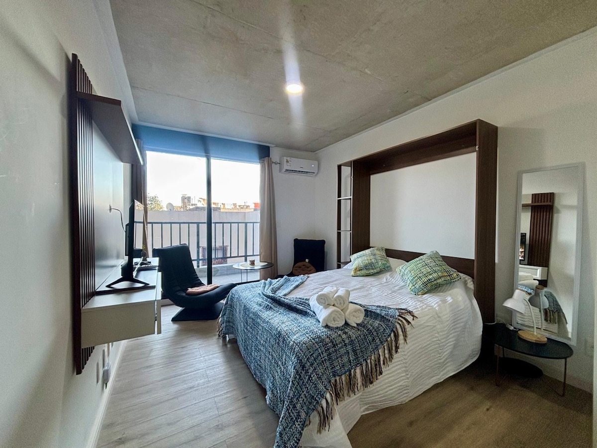 入住這間全新的現代公寓,享受蒙得維的亞魅力,非常適合獨自旅行者、情侶或商務旅行者入住。 它坐落在市中心,靠近一切,擁有美麗的城市景觀、現代設計和所有設施。 公寓有24小時保安,其位置位於這座城市的主要街道之一。 一個理想的地方,舒適且實用,讓您在蒙得維的亞度過難忘的時光。