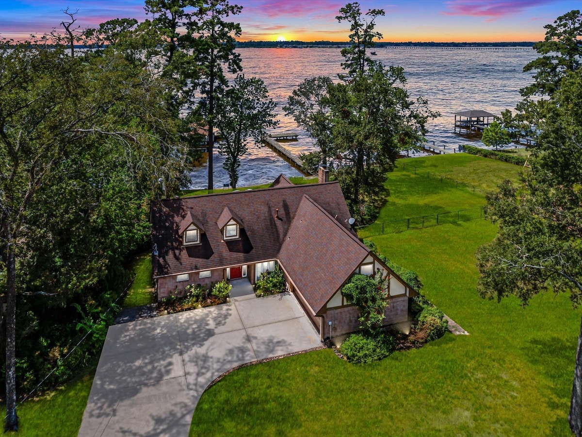 歡迎來到德州Humble的私人湖畔度假勝地—一個安靜的現代農舍度假勝地,位於安靜的死胡同的末端,周圍有高大的樹木、鳥鳴聲和輕鬆的自然氛圍。 非常適合自然愛好者、家庭團聚、住宿和週末度假。 ★ 泳池和浮板 按★ 摩浴池 ★大草坪,充滿遊戲 ★帶家具和餐桌的涼亭 ★ 火坑 ★日光浴躺椅 ★ 戶外燒烤 ★室內娛樂和桌遊 ★ 全套廚房
