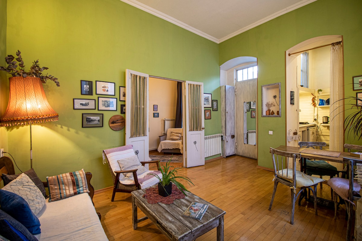 從市中心步行探索第比利斯。入住19世紀的建築,陽光充足的公寓,配有舒適的客廳、設備齊全的廚房、加大雙人床、空調/暖氣。 距離魯斯塔韋利大道(Rustaveli Ave.)幾步之遙。步行1-5分鐘即可抵達自由廣場(Freedom Square)、地鐵、餐廳、商店、公園、博物館、劇院、電影院。