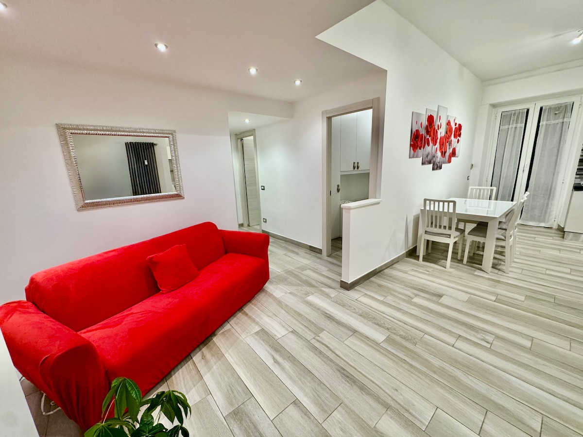 在這個安靜的新建住宿中,與全家人一起放鬆,既舒適又優雅......舒適的公寓距離菲烏米奇諾機場5公里,配有空調、Wi-Fi、2臺電視、床和沙發床、配備齊全的廚房,從微波爐到咖啡機,帶淋浴的浴室和大陽臺。