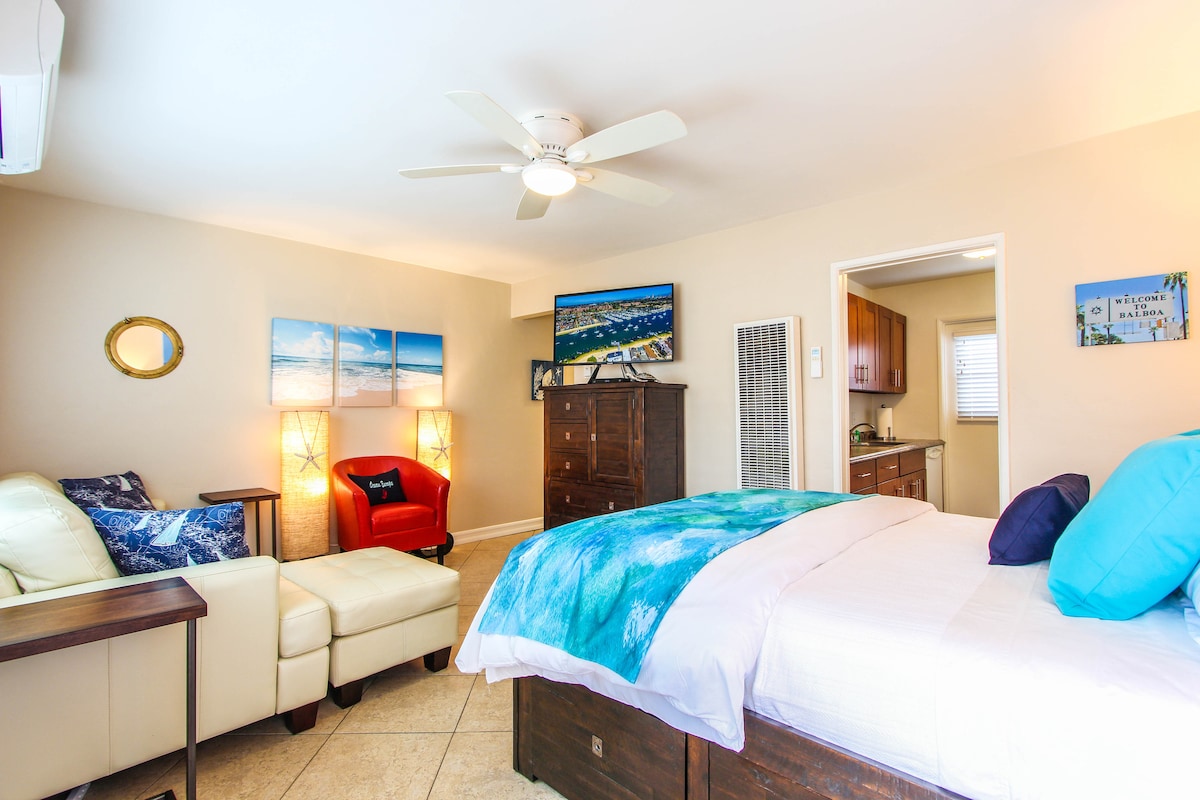 地理位置優越,可前往 Newport Beach + Eastside Costa Mesa 的所有地方,您唯一要做的決定是步行、騎車或開車。室內設計精美,1間臥室/1間浴室/全功能廚房,配有獨立入口。非常理想的佈局,100%隱私。 全新洗衣機/烘乾機和便攜式空調,加上獨立入口,沒有台階!