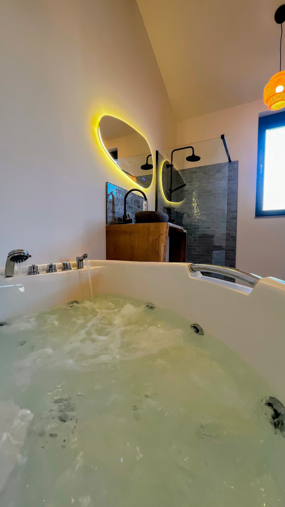 平靜的天堂-現代化、安靜和按摩浴缸 現代化住宿,專為身心健康而設計,非常適合2人入住🤍 享受舒適的空間,裝飾雅緻,配備獨立按摩浴缸和投影機,讓您享受獨特的放鬆時光。☕ 距離市中心只有 15 分鐘步行路程,在平靜和都市之間取得完美平衡。🏢 真正的蠶繭,讓您充電並享受舒適親密的體驗✨