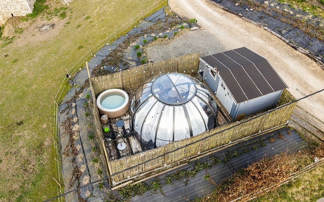在這個獨特的圓頂帳篷中,在大自然中冒險,並在星空下入睡。這個避難所將野外露營的精神與現代舒適融為一體。享受設備齊全的廚房、涼爽夜晚的火爐,以及戶外木製浴室,真正回歸自然。周圍環繞著森林花園和當地野生動物,這是重新與大自然建立聯繫的絕佳機會,同時享受獨特而真實的體驗。