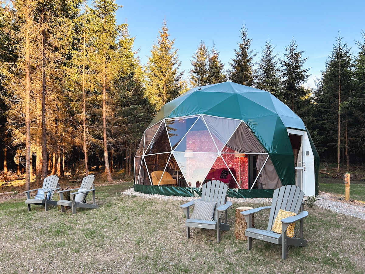 阿登的豪華露營圓頂屋,可供人入住。 享受浪漫時光,欣賞森林全景,入住舒適的雙人床,使用帶淋浴的現代化浴室,體驗優雅的設計。舒適的戶外座位區邀請您在大自然中放鬆身心。 非常適合尋找豪華露營、自然體驗、寧靜、舒適和在森林中獨享時光的情侶。