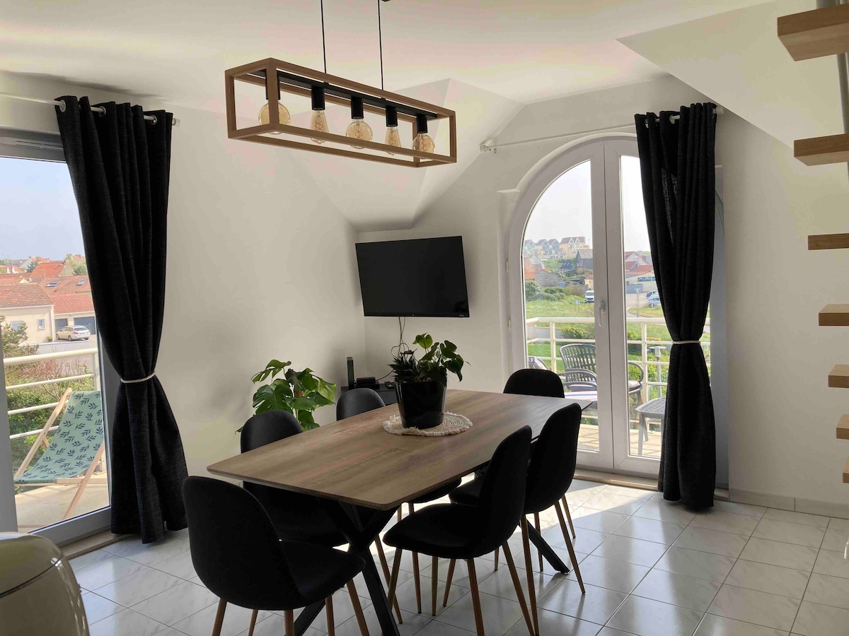 舒適地坐在客廳的沙發上,讓自己沉浸在欣賞大海的美景中... 我們的公寓位於「Grand Bleu」的第 6 層和頂樓(可搭乘電梯)。 公寓擁有壯麗的海景,如果天氣晴朗,您可以欣賞到布洛涅燈塔、歐泊爾海岸和英格蘭懸崖。 公寓底層即可直達海灘,對面就是兒童泳池。
